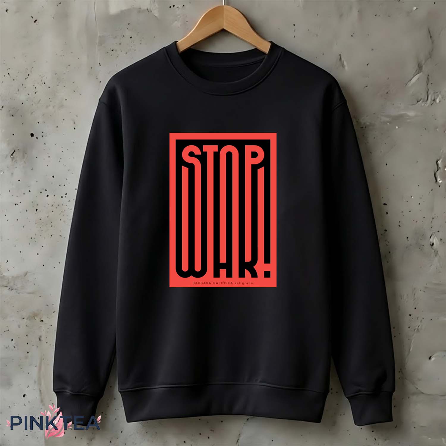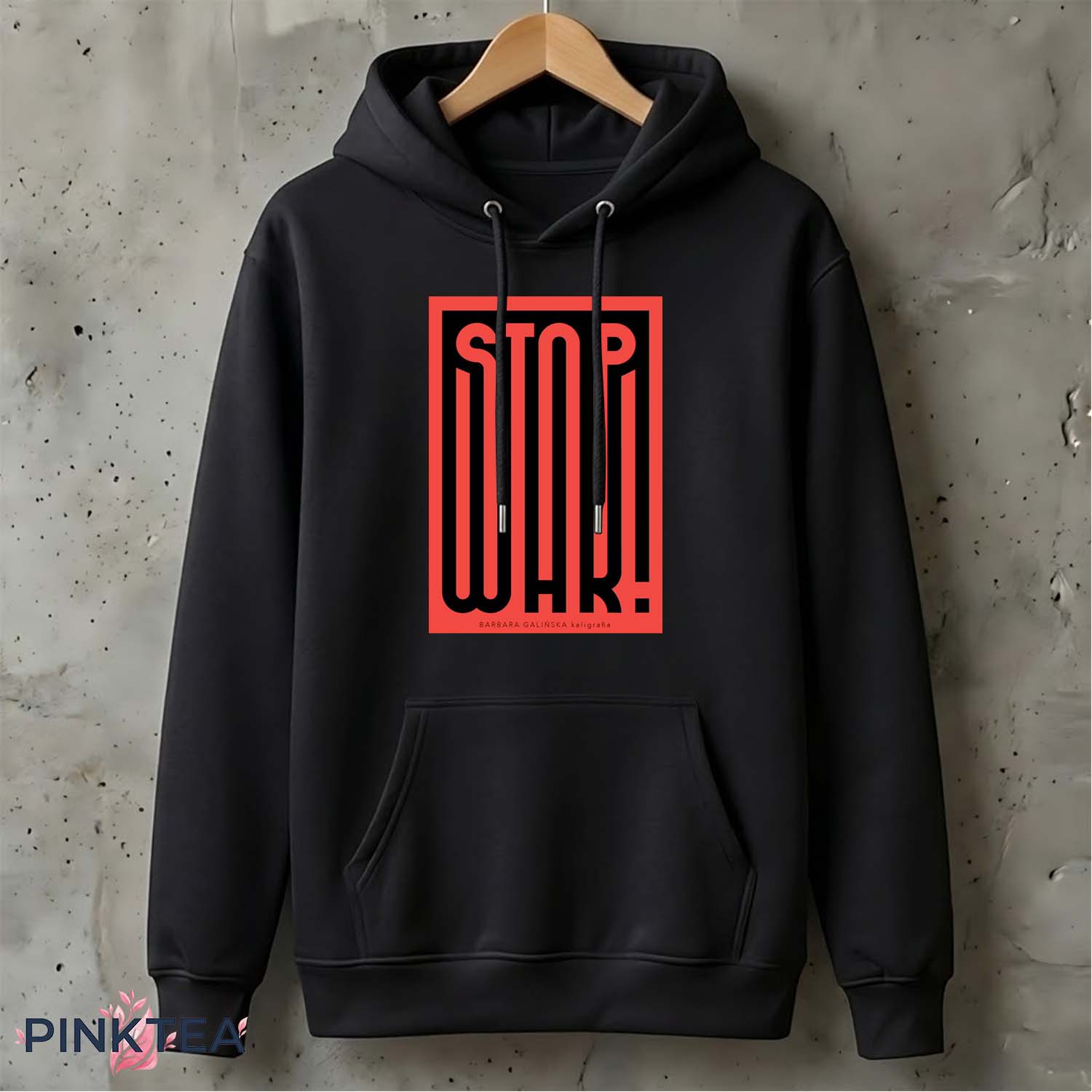 The Barbara Galińska Stop War Shirt is inspired by a striking typographic artwork shared widely online, credited to Barbara Galińska’s distinctive calligraphy style. The design has gained attention across social media for its bold anti-war message, turning graphic typography into a powerful visual statement worn by those who value peace and artistic expression.