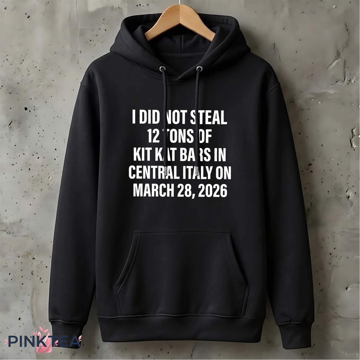 The I Did Not Steal 12 Tons Of Kit Kat Bars In Central Italy On March 28 2026 Shirt is exactly the kind of absurd statement tee that wins people over by being wildly specific and completely unbothered. Built for internet humor, ironic fashion, and “wait… what?” reactions, this design turns a bizarre non-denial into the entire joke.