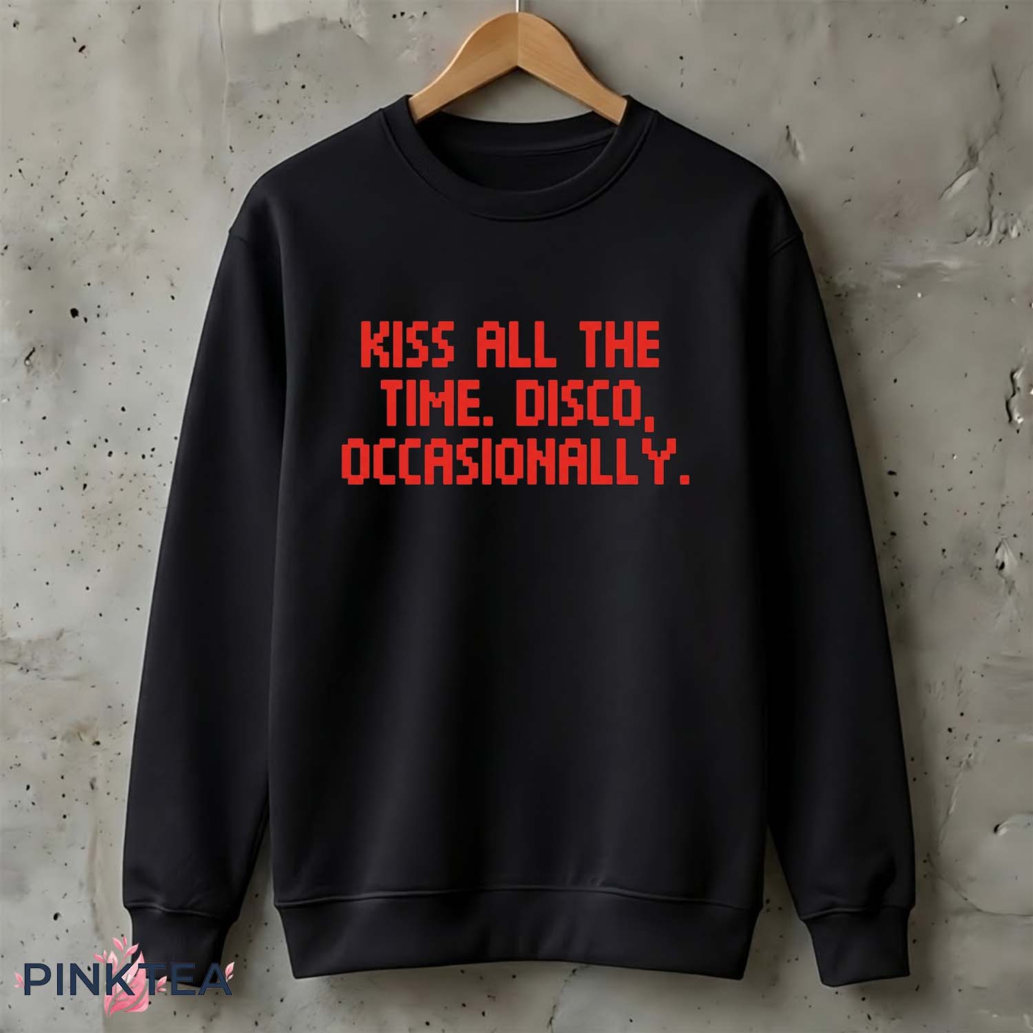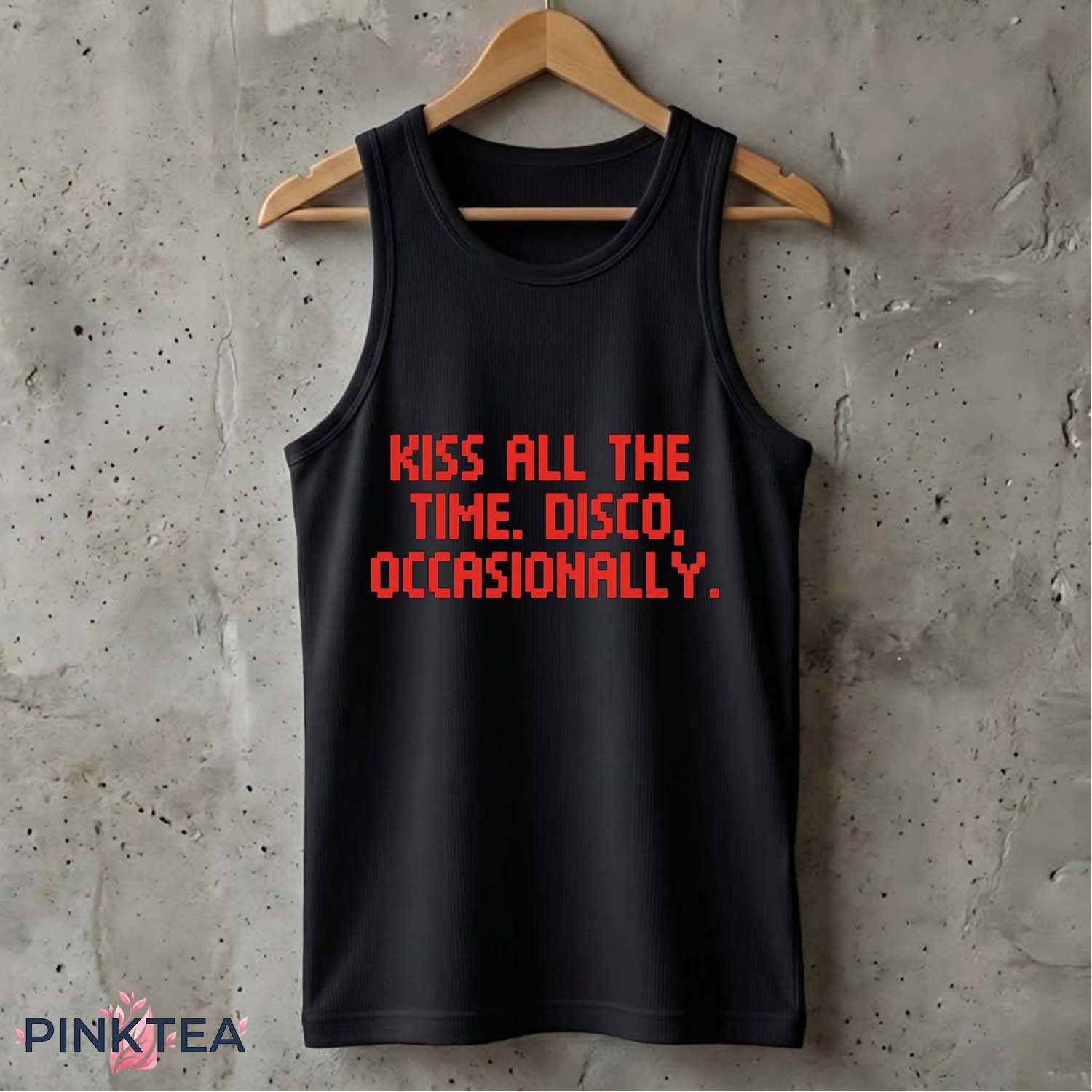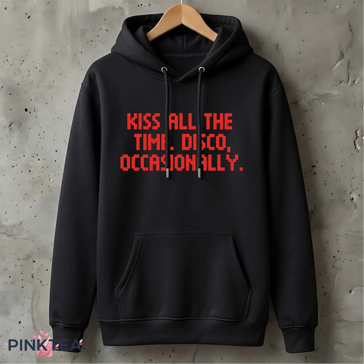 The Kiss All The Time Disco Occasionally Shirt captures the charm of playful, minimalist humor with a design that instantly stands out. Featuring bold red pixel-style lettering on a black background, the shirt reads: “Kiss All The Time. Disco, Occasionally.” The phrase feels both mysterious and witty, like a short line from an old-school video game or a quirky piece of retro internet humor. It’s simple, memorable, and exactly the kind of statement that sparks curiosity the moment someone reads it.